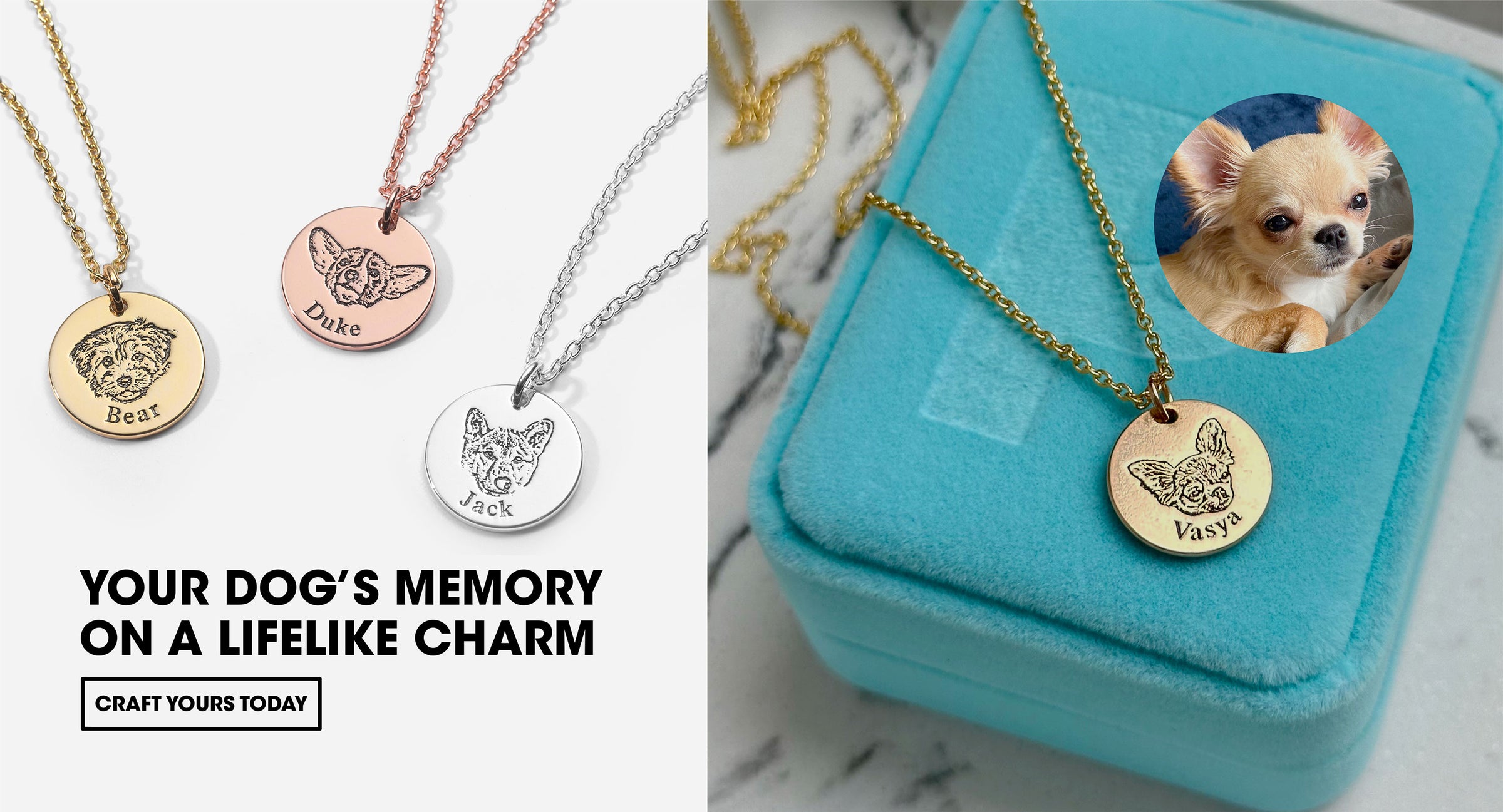 Make every day a little brighter with jewelry that’s crafted just for you and your fur baby. Our personalized pieces let you keep them close to your heart, wherever you go.