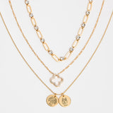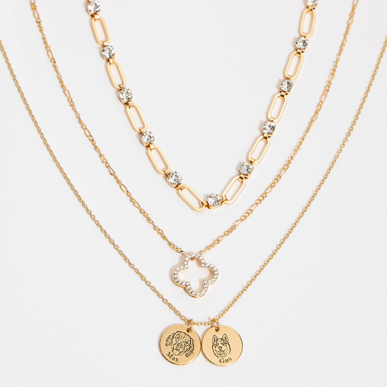 Notre ensemble de colliers réunit trois colliers magnifiquement conçus qui se marient harmonieusement à votre style, ajoutant une touche d'éclat et de sentiment personnel à votre look quotidien.